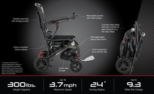 Weighing a mere 39 pounds without the battery, the Jazzy Carbon defies expectations by delivering top speeds of up to 3.7 mph with an impressive weight capacity of 300 pounds. It's the perfect solution for individuals who prioritize both performance and convenience in their daily lives.